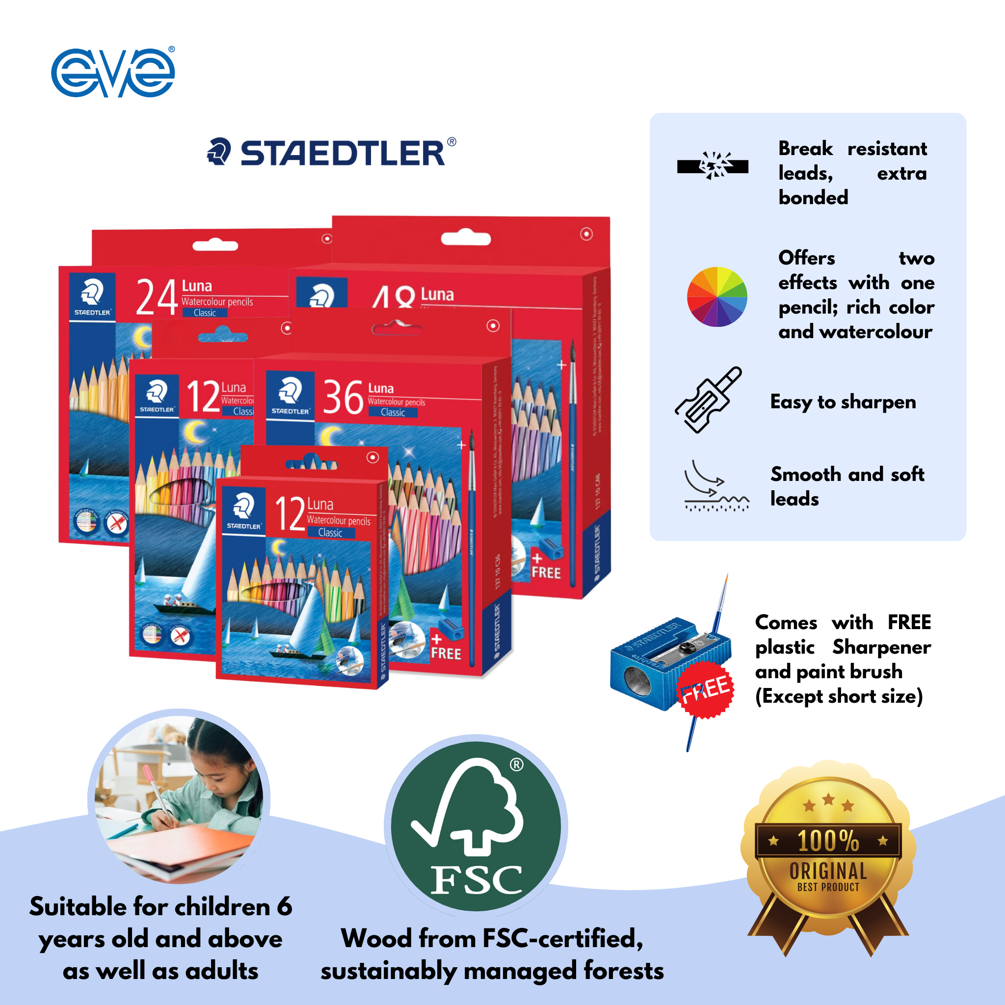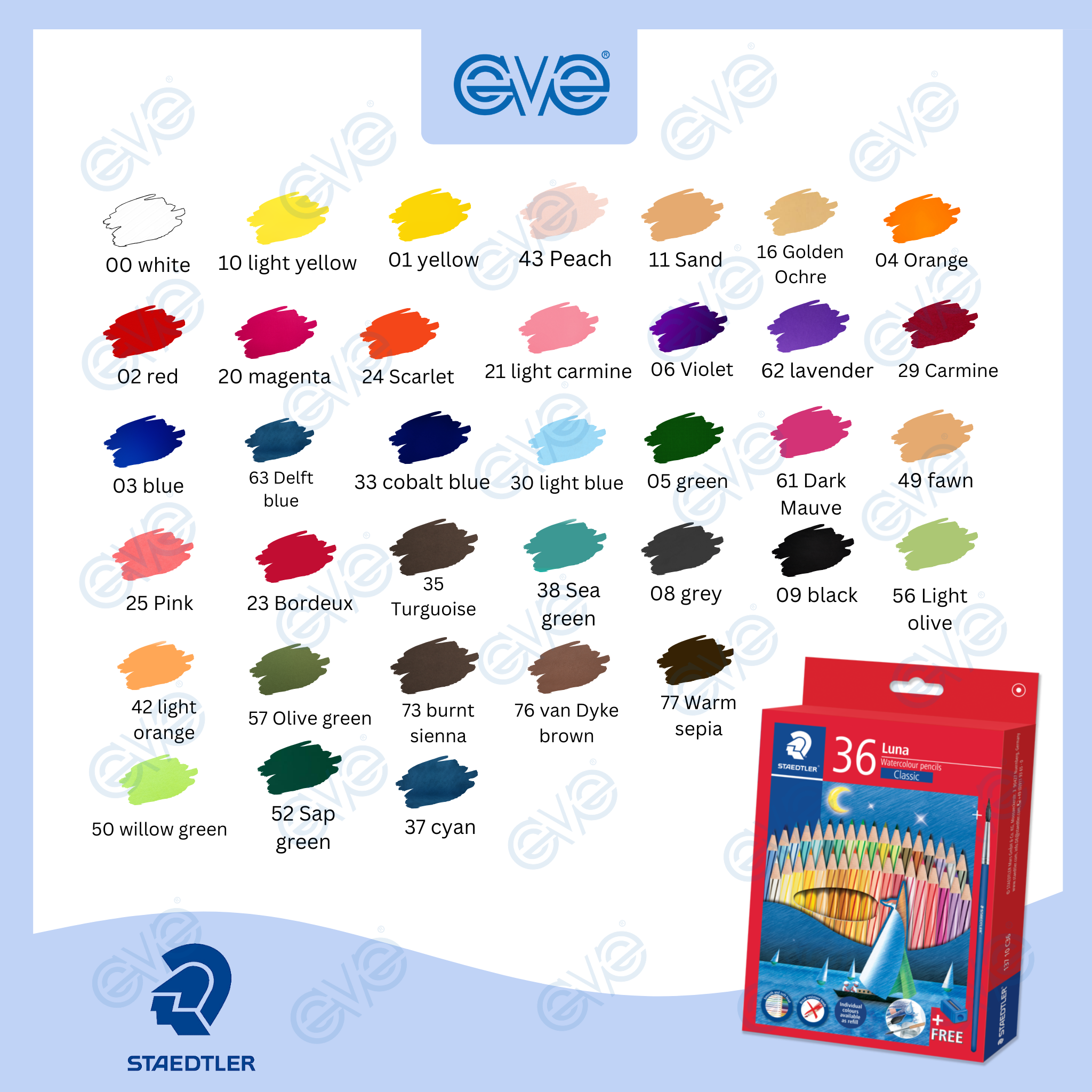 Brand: Staedtler Type: Watercolour pencil Size: Short and long Piece: 12pcs , 24pcs , 36pcs , 48 pcs