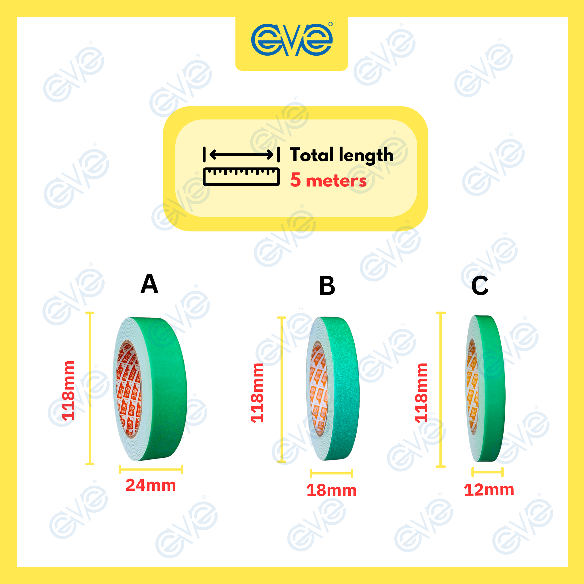Brand: EVE Type: Green foam tape Size: 12mm x 5m, 18mm x 5m , 24mm x 5m